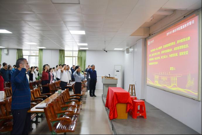 本次大会旨在进一步明确师德师风第一标准,推动立德树人根本任务落地,通过主题讲座、签订教师师德规范承诺书、重温教师誓词三个环节,为全院教职工筑牢思想根基,凝聚育人共识。