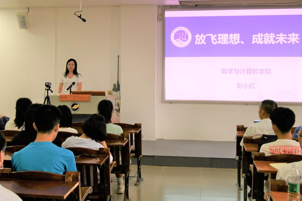 院长彭小红教授为新生致欢迎词,并以“放飞梦想,成就未来”为题讲授新生入学第一课。她先介绍了成人视频