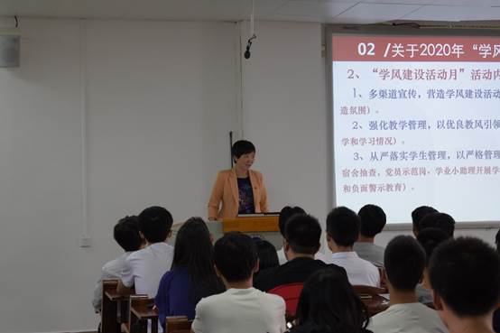 一要多渠道宣传,营造浓郁的学风建设活动氛围。二要大力强化教学管理,以优良教风引领学风。三要从细加强学生管理,以严格的管理营造良好学风。她对院系和班级学生干部在担任学生干部的价值追求、干部思想道德和业务素质提出要求,希望全院各级学生干部要坚定信念,做好学生的榜样,当好学生的服务员和管理员,以实际行动做好学风建设活动月的各项活动。