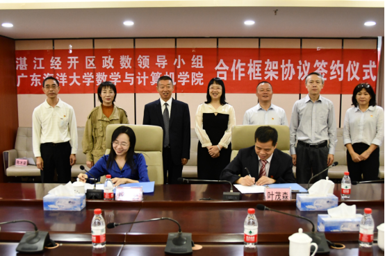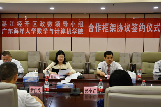 与湛江市经济开发区政务服务数据管理局(以下简称“市经开区政数局”)签署了合作框架协议。院长彭小红教授、书记谢仕义教授、市经开区管委会副主任陈冰湖、经开区政数局领导小组副组长、区委第三巡察组长叶茂森、经开区政数局筹建办副主任、区社保局副局长林辉等领导出席了签约仪式。