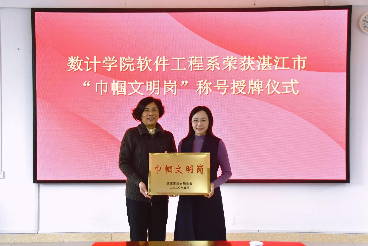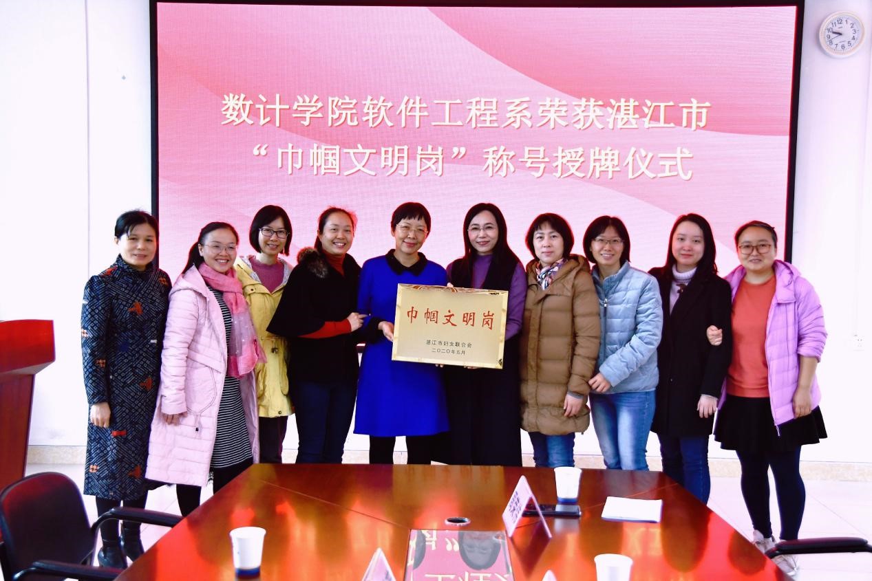 在第二教学楼A座405会议室隆重举行湛江市“巾帼文明岗”授牌仪式,校工会常务副主席李茵、成人视频